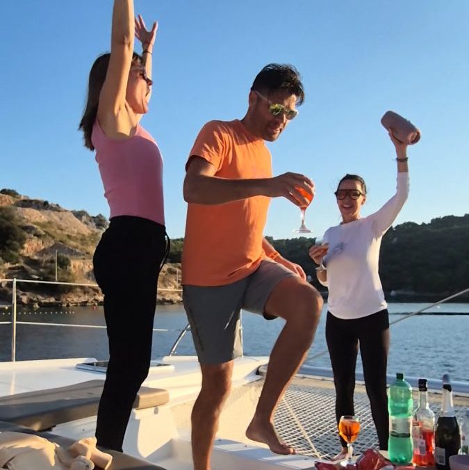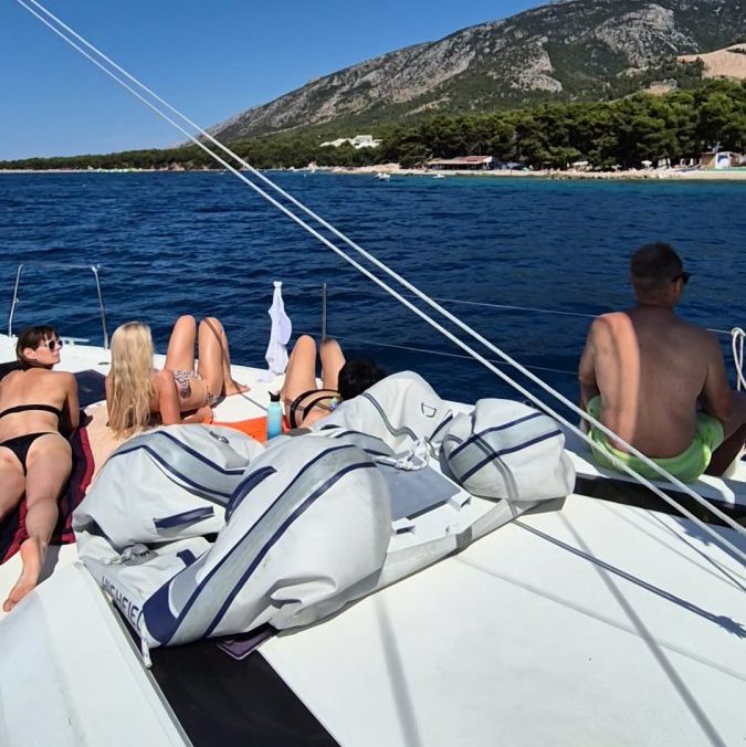 Potem odrinemo med dalmatinske otoke. Lahek veter, mehki valovi in razgledi, ki se menjajo pred tabo – modrina, zalivi, voda v vseh odtenkih modre. Tvoja edina naloga: biti tukaj. Dihati. Malo opazovati. In končno občutiti samoponos, da si to dovoliš. Da nič ne rabiš delati. Da za nič ne skrbiš. Res nič, samo zase.